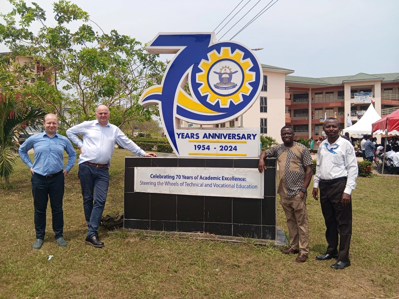 W dniach 17-23 lutego 2025 roku pracownicy Katedry Kształtowania Środowiska i Teledetekcji SGGW odbyli wizytę w Ghanie. Dr hab. Jarosław Chormański, prof. SGGW oraz dr Paweł Sudra przebywali z wizytą na Uniwersytecie Technicznym w Kumasi (Kumasi Technical University – KsTU) w związku z uruchomieniem projektu „POKAZ – Kumasi”, finansowanego w ramach programu KATAMARAN przez Narodową Agencję Wymiany Akademickiej (NAWA). Projekt dotyczy realizacji wspólnego programu studiów magisterskich w Inżynierii Środowiska „Modern Engineering in Water Management”, w formule umożliwiającej nadanie dyplomów magisterskich obu uczelni dla studentów z Ghany i z Polski. Gościli nas pracownicy Wydziału Budownictwa i Środowiska Naturalnego, w szczególności: Prof. Dr Addo Koranteng, prodziekan do spraw międzynarodowych i relacji instytucjonalnych (a również absolwent leśnictwa na SGGW); Prof. Sarfo Mensah; kierownik Biura ds. międzynarodowych i relacji instytucjonalnych, Dr. Elijah Frimpong Boadu, kierownik Katedry Inżynierii Lądowej.